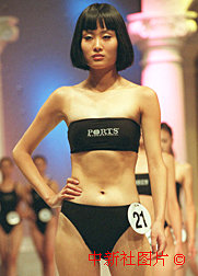 圖:2000新絲路中國模特大賽山西選拔賽泳裝表演 2000年8月5日 10:40 ![]() 2000新絲路中國模特大賽山西選拔賽三日晚在太原市舉行,身穿泳裝的女模特選手趙鑫獲選拔賽亞軍。中新社記者:錢興強(qiáng)攝 |