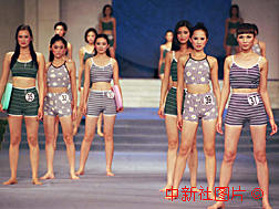 圖:中國(guó)民族時(shí)裝模特大賽 1999年8月18日 08:00 ![]() 九九中國(guó)民族時(shí)裝模特大賽十六日晚在南寧結(jié)束,圖為選手們?cè)谟狙b比賽中。中新社記者 錢(qián)興強(qiáng) 攝 |