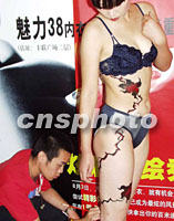 圖:“魅力38內(nèi)衣”人體彩繪 2001年08月03日 17:50 ![]() 北京“魅力38內(nèi)衣”,三日在北京豐聯(lián)廣場開設京城第二家分店,一名畫師聚由海外公司合作開辦的北京“魅力38內(nèi)衣”,三日在北京豐聯(lián)廣場開設第二家分店。圖為一名畫師正聚精會神為身穿內(nèi)衣的模特小姐繪畫。中新社記者 錢興強 攝