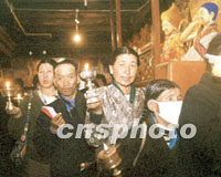組圖:八月的西藏 2001年08月14日 16:50 ![]() 八月是西藏旅游的黃金季節(jié),藏民牽著牦牛在美麗的羊卓雍湖邊迎候游人,他們以為游客提供照相服務而增加自己的收入。中新社記者 滿會喬 攝 ![]() 八月的西藏拉薩,前往大昭寺朝拜釋迦牟尼佛像的藏民絡繹不絕。相傳這里供奉的釋迦牟尼佛像為唐朝初年文成公主帶入西藏。中新社記者 滿會喬 攝