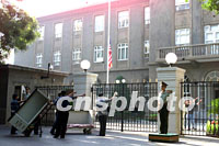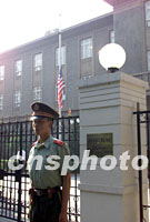 組圖:美國(guó)駐中國(guó)大使館降半旗表示哀悼 2001年09月12日 10:43 ![]() 美國(guó)駐中國(guó)大使館十二日清晨降半旗,對(duì)在美國(guó)紐約與華盛頓恐怖事件中的罹難者表示哀悼。中新社記者 毛建軍 攝 ![]() 美國(guó)駐中國(guó)大使館十二日清晨降半旗,對(duì)在美國(guó)紐約與華盛頓恐怖事件中的罹難者表示哀悼。中新社記者 毛建軍 攝