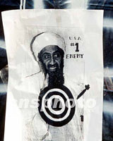圖:本·拉登成為美國人泄憤之靶 2001年09月21日 10:52 ![]() 布什總統(tǒng)斷言本·拉登是九一一恐怖襲擊的頭號嫌犯,“死的活的都要”。紐約街頭一些悼念場所出現(xiàn)帶靶環(huán)的本拉登頭像,以泄心頭之恨。中新社記者 郭健 攝 |