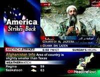 中新網(wǎng)北京10月8日消息:卡塔爾“半島”電視臺當?shù)貢r間7日晚播放了被美國指控為“9·11”恐怖事件主要嫌疑人的本·拉登的講話。他在講話中稱,美國對阿富汗和他本人發(fā)動的軍事打擊是對伊斯蘭“宣戰(zhàn)”。他發(fā)誓不會讓美國得到安寧。 “半島”電視臺是在美國開始對阿富汗進行軍事打擊約1小時后播放這一講話的。本·拉登在講話中說,在巴勒斯坦人能夠享受安寧的生活和所有的美國士兵從阿拉伯半島撤出之前,他發(fā)誓不會讓美國和生活在美國的人得到安寧。 本·拉登對襲擊美國的恐怖事件大加贊賞,但他并未承認“9·11”恐怖事件是他領導的“基地”組織所為。 “半島”電視臺所播放的拉登講話的畫面背景是白天,這表明拉登的這一講話可能是事先錄制好,準備在美國開始對阿富汗的軍事打擊后播放。 |