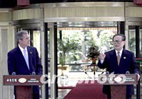 組圖:中美首腦舉行記者招待會(huì) 2001年10月19日 14:44 ![]() 十月十九日,中國(guó)國(guó)家主席江澤民和美國(guó)總統(tǒng)布什在上海的會(huì)談結(jié)束后,共同于西郊賓館睦如居前舉行記者招待會(huì)。中新社記者 賈國(guó)榮 攝 ![]() 10月19日,國(guó)家主席江澤民在上海與美國(guó)總統(tǒng)布什共同會(huì)見(jiàn)中外記者。中新社圖