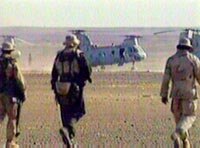 圖:美軍加強在坎大哈的軍事部署 2001年12月04日 10:50 ![]() 三名美國特種部隊士兵四日走向坎大哈南部美軍基地的直升飛機。美軍日前正加強在坎大哈的軍事部署,但仍沒有地面部隊直接參與攻打坎大哈的進(jìn)攻。 |