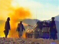 圖:反塔部隊宣布占領(lǐng)托拉搏拉地區(qū) 2001年12月06日 11:29 ![]() 阿富汗楠格哈爾省反塔利班將領(lǐng)哈茲拉特-阿里五日宣布,他的部隊占領(lǐng)了本-拉登可能隱藏的托拉搏拉地區(qū),據(jù)稱大約1000多名本-拉登的追隨者剛剛逃離這一地區(qū)。圖為戰(zhàn)斗中的反塔聯(lián)盟士兵。 |
