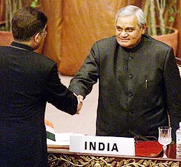 巴總統(tǒng)在南亞首腦會(huì)向印總理伸出友誼之手(圖) 2002年01月05日 15:45 ![]() 中新網(wǎng)北京1月5日消息:巴基斯坦總統(tǒng)穆沙拉夫在剛剛揭幕的南亞區(qū)域合作聯(lián)盟首腦會(huì)議上發(fā)表演說(shuō)后,主動(dòng)與印度總理瓦杰帕伊握手。 巴基斯坦總統(tǒng)穆沙拉夫發(fā)表演說(shuō)指出,所有與會(huì)代表地位必須平等,各國(guó)要尋求長(zhǎng)遠(yuǎn)的辦法,解決地區(qū)內(nèi)事務(wù)爭(zhēng)端.他還說(shuō),巴基斯坦是恐怖主義的受害者,并重申他已準(zhǔn)備好同印度展開(kāi)對(duì)話(huà)。他在結(jié)束發(fā)言之前,主動(dòng)提到與印度的緊張關(guān)系,并表明愿意隨時(shí)與印度展開(kāi)和平對(duì)話(huà)以及愿意伸出真正友誼之手,然后他就步向瓦杰帕伊與他握手。 而印度總理瓦杰帕伊則感謝穆沙拉夫主動(dòng)向他伸出友誼之手,并呼吁雙方停止無(wú)意義的暴力沖突。他稱(chēng)印度一直積極尋求同巴基斯坦和談,但依然受到襲擊。他還說(shuō),印度在近二十年間不斷受?chē)?guó)際恐怖主義侵襲,全球必須合作打擊恐怖主義。 印巴關(guān)系因?yàn)橛《葒?guó)會(huì)遇襲事件而惡化,雙方均在邊境部署軍隊(duì)并不時(shí)交火。印度總理瓦杰帕伊要求巴基斯坦采取強(qiáng)硬手段對(duì)付境內(nèi)極端份子,否則拒絕與穆沙拉夫直接對(duì)話(huà)。兩國(guó)領(lǐng)袖昨晚在尼泊爾皇宮參加晚宴期間沒(méi)有直接接觸。 |