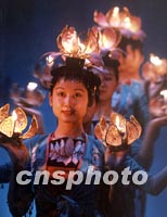 圖:桂林少女的蓮花舞 2002年01月13日 09:53 ![]() 一隊桂林少女扮作荷花仙子,為新年伊始到此的中外游客表演夜色荷燈舞。中新社記者 賈國榮 攝 |