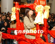 圖文:趙薇香港坐花轎宣傳新片 笑言很安全 2002年02月04日 16:00 ![]() 中新網(wǎng)香港2月4日消息:趙薇為新戲《天下無雙》做宣傳昨日赴港,安排她與王菲乘坐花轎到場,而兩男主角梁朝偉及張震,一個(gè)踢轎門、一個(gè)接花球。雖說趙薇近日很少公開露面,但她的影迷仍熱情未減。 據(jù)香港媒體報(bào)道,這次是她自“遇襲”之后首度在香港公開露面,加上又人多,問到她是否會感壓力及害怕?趙薇則輕松的答:“不會,謝謝王菲、梁朝偉一直支持我,壓力全在他們身上罷了”,而且覺得身在香港也比較很安全。 相關(guān)報(bào)道:圖:梁朝偉王菲趙薇張震聯(lián)手在香港推介《天下無雙》 相關(guān)報(bào)道:《天下無雙》首映藏玄機(jī) 趙薇 相關(guān)報(bào)道:圖文:《天下無雙》拍竣 王菲趙薇粉碎不和傳言 相關(guān)報(bào)道:圖文:歷經(jīng)波瀾“小燕子”趙薇片場無聲對記者 相關(guān)報(bào)道:趙薇有沒有被潑糞?香港某雜志刊登清晰照片 相關(guān)報(bào)道:趙薇公開致歉 稱軍旗裝事件是“無心之失”