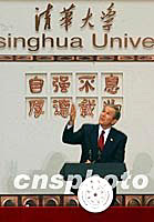 組圖:布什在清華演講 2002年02月22日 14:12 ![]() 訪華的美國總統(tǒng)布什二十二日在北京清華大學發(fā)表演講。中新社記者 賈國榮 攝 ![]() 美國總統(tǒng)布什二十二日在北京清華大學發(fā)表演講后下臺時,踩在臺階上身體搖晃了一下,他馬上和校長張開雙臂好似保護動作般開玩笑。中新社記者 賈國榮 攝