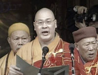 組圖:法門寺佛指舍利赴臺瞻禮恭送法會盛況 2002年02月22日 16:07 世間僅存的釋迦牟尼佛指舍利 ![]() 西安法門寺隆重舉行佛指舍利恭送法會 ![]() 中國佛教協(xié)會副會長圣輝法師在恭送法會上致辭 ![]() 臺灣佛光山星云法師為佛指舍利拈香 ![]() 臺灣社會名流吳伯雄(右)和中國佛教協(xié)會副會長兼秘書長刀述仁為佛指舍利拈香 中新網(wǎng)西安2月22日消息:佛界圣物、西安法門寺佛指舍利即將赴臺供奉瞻禮。今天下午3時(shí)至4時(shí)30分,西安法門寺為此舉得隆重的恭送法會。 據(jù)悉,此次赴臺期間,佛指舍利將巡回臺北、臺中、南投和高雄等地,供佛教僧俗二眾和社會各界瞻仰。