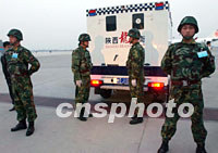 組圖:咸陽機(jī)場(chǎng)戒備森嚴(yán)護(hù)衛(wèi)佛指舍利 2002年02月23日 17:28 ![]() 法門寺佛指舍利赴臺(tái)灣地區(qū)瞻禮(供奉)恭送法會(huì)二十三日在西安咸陽機(jī)場(chǎng)舉行圖為當(dāng)?shù)卣沙鼍臁⑽渚_保佛指舍利安全。中新社圖 錢興強(qiáng) 攝 ![]() 法門寺佛指舍利二十三日在武警嚴(yán)密護(hù)送下,運(yùn)抵西安咸陽機(jī)場(chǎng)。中新社圖 錢興強(qiáng) 攝