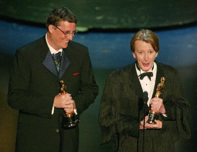 圖文:影片《指環(huán)王》獲奧斯卡最佳化妝獎(jiǎng) 2002年03月25日 10:23 中新網(wǎng)北京3月25日消息:《指環(huán)王》獲得最佳化妝獎(jiǎng),理查德·泰勒和匹特·歐文接過(guò)奧斯卡金人,此外,該片還獲得了最佳攝影大獎(jiǎng)。(法新圖)