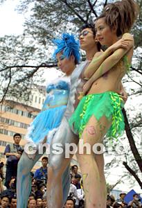 組圖:廣州街頭展示人體彩繪吸引眾多攝影發(fā)燒友 2002年04月06日 18:03 ![]() 廣州某攝影器材城為吸引顧客,六日上午在門口公開(kāi)展示人體彩繪,吸引上百名發(fā)燒友前來(lái)拍攝。中新社圖 柯小軍 攝