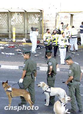 圖:耶路撒冷再次發(fā)生自殺性爆炸事件 2002年06月20日 08:56 ![]() 耶路撒冷19日晚上發(fā)生一起自殺性爆炸事件,至少造成7人死亡,37人受傷。這是耶路撒冷市區(qū)在不到48小時(shí)內(nèi)發(fā)生的第二起自殺性爆炸事件。圖為以色列警察和搜索炸彈的專家在耶路撒冷法蘭西山附近。