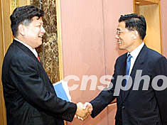 圖:傅昆萁表示希望與大陸聯(lián)手舉辦2008奧運(yùn)會(huì) 2002年06月24日 19:34 ![]() 中共中央臺(tái)辦常務(wù)副主任、海協(xié)會(huì)常務(wù)副會(huì)長(zhǎng)李炳才(右)二十四日在北京與臺(tái)灣“海峽兩岸政經(jīng)交流聯(lián)誼會(huì)三通參訪團(tuán)”舉行座談。其間,傅昆萁團(tuán)長(zhǎng)表示希望與大陸聯(lián)手舉辦二00八奧運(yùn)會(huì)。作者:鄭萍萍