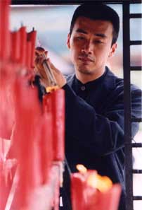 拍攝花絮:柳云龍靈山大佛前祈禱(多圖) 2002年07月11日 15:50 ![]() 現(xiàn)場圖片 ![]() 無錫有座靈山,靈山大佛為天下第一高立佛,高達(dá)88米。相傳佛陀涅槃后千年,玄奘大弟子窺基帶著佛祖遺物——菩提心燈至靈山傳法,遂神燈成為靈山鎮(zhèn)山之寶。因此緣,再四百年,佛祖百丈金身終現(xiàn)靈山山巔。我們的景就選在這個空靈而神奇的地方。 全組清早五時從駐地出發(fā),沐著淡淡的薄霧前行,偶爾有幾簇青蔥的仙人樹映入眼簾,樹上花紅似火。事先沒有任何預(yù)兆,天下突然起了大雨,我們是在雨中進(jìn)入祥符寺的,鐘六一的重頭戲?qū)⒃谶@里完成。由于雨太猛烈,劇組無法工作,所有的人在殿前靜靜地候著。香燭忽明忽暗,山門口的佛背身而立,呢喃的頌經(jīng)聲遠(yuǎn)遠(yuǎn)傳來,青煙裊裊濾去塵世的躁動,勾勒歲月的嬗變。雨稍小了一點,劇組開始拍攝,柳云龍飾演的黑社會老大鐘六一是個身世復(fù)雜經(jīng)歷奇異終日徘徊在矛盾與痛苦中的人物,當(dāng)他曾經(jīng)輝煌、磨難、罪惡直至眾叛親離的一生走到盡頭的時候,鐘六一孤獨地找尋寺廟,似乎這里有種力量在召喚著他。柳云龍換上一身墨色的行頭,支著黑傘,出現(xiàn)在鏡頭前,蒼白的臉頰裸露青茬,和著雨珠同冰冷。他徑直走入佛殿,跪拜佛前,將臉深埋蒲團(tuán),久久未起。因為雨的淅瀝,因為柳云龍的專注,大家一時竟分不出是戲里還是戲外。一名僧者掠過鐘六一,在他身邊低語了一番,鐘六一呆滯的雙眼突然跳動了一下,福田寬廣,也許這個或無情或深情的焦灼靈魂在此刻頓悟——往事隳飛煙滅,一切皆成夢魘。 大家渾身濕透,有雨水更有汗水。如果說影視是切換的張力的藝術(shù),那么,跟隨角色的足跡,演員循著創(chuàng)作進(jìn)程可以發(fā)掘存在的原本,表達(dá)的支點。進(jìn)入拍攝后期的柳云龍極大地沉浸在人物的狀態(tài)里,桀驁不馴,獨來獨往,演員的幸福與痛苦于第一自我和第二自我的交替中穿插著,這是創(chuàng)造賦予創(chuàng)造者的生命。 柳云龍在鐘六一的起落中脫胎換骨,完成著作為演員的使命。