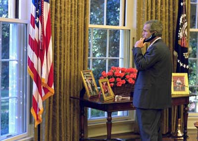 中新網(wǎng)北京9月6日消息:據(jù)法新社發(fā)自白宮的消息,美國總統(tǒng)喬治-布什今天打電話給中國、俄羅斯和法國的領(lǐng)導(dǎo)人,就伊拉克問題進(jìn)行了商談。
