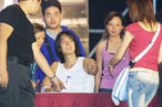 Vanness舉行完簽唱會之后,昨午已飛返臺灣。原本Vanness搭下午一點的飛機離開,但最后改搭三點班機。Fans不但逃學(xué)來守候偶像,有十名歌迷更搭的士由酒店追到機場。約兩點十分,帶帽一身牛仔裝束的吳建豪抵達機場,一下車半百名Fans即鋒擁而上,瘋狂尖叫,更紛紛將禮物遞給他,情況一片混亂,其中一名女歌迷追逐期間還甩掉了鞋子!不過她仍然不理光著腳丫子繼續(xù)死追!