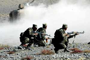 中新網(wǎng)10月11日電據(jù)香港文匯報(bào)的消息,中國和吉爾吉斯斯坦最近兩天舉行聯(lián)合反恐軍事演習(xí)。這次醞釀半年的大規(guī)模演習(xí)在兩國邊境進(jìn)行,兩國部隊(duì)也將跨境共同作戰(zhàn),雙方參與作戰(zhàn)演習(xí)的部隊(duì)除了邊防部隊(duì)外,還有特種部隊(duì)。