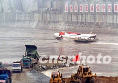 10月31日下午4時,最后一艘開往長江上游方向的高速水翼船,順利通過三峽工程截流前的導(dǎo)流明渠。這標志著已安全通航5年多的導(dǎo)流明渠結(jié)束了通航歷史。孫榮剛 攝