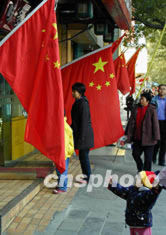 “十六大”召開前夕的北京街頭呈現(xiàn)出一派喜氣洋洋的景象。阜城門一帶的店鋪家家戶戶懸掛起五星紅旗。作者:張煒