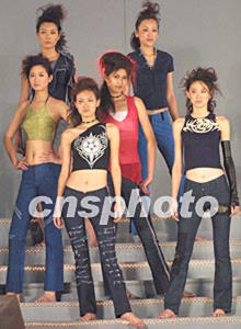 在2002年中國廣州(新塘)國際牛仔服裝節(jié)上,香港設計師俞儷軒的作品四日晚由中國名模姜培琳領銜展現(xiàn)在人們面前。作者:趙振清
