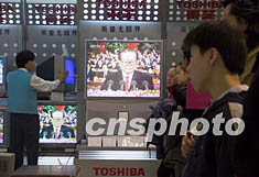 在素有“神州第一街”之稱的王府井大街和西單商業(yè)街上,上百面彩旗迎風起舞,近千盞燈籠高高懸掛,迎接十六大勝利召開的橫幅、標語和多媒體大屏幕櫛次鱗比,令人目不暇接。許多手拿小紅旗的顧客被不時傳出的掌聲所吸引,紛紛涌向商場里的視聽專賣區(qū),而商家們也自發(fā)地把所有的電視機都調到了中央電視臺的直播頻道,有的商場還為顧客擺放了坐椅。
