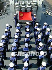 解放軍東海艦隊(duì)官兵在中共十六大召開之際列隊(duì)宣誓,堅(jiān)決履行好守護(hù)祖國(guó)海疆的神圣使命。作者:鐘魁潤(rùn)