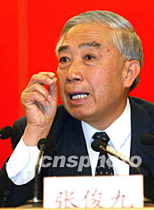 中新網(wǎng)北京11月11日電(記者 朱大強(qiáng))中共十六大新聞中心今天下午舉行第二場(chǎng)記者招待會(huì),勞動(dòng)和社會(huì)保障部部長(zhǎng)張左己、全國(guó)總工會(huì)副主席張俊九回答中外記者提問(wèn)。招待會(huì)由大會(huì)新聞發(fā)言人李冰主持。
