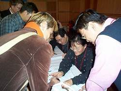 據(jù)新聞中心的一位工作人員介紹,由于新常委與記者們見面的場地面積有限,而此次參加十六大報道工作的中外記者人數(shù)又太多,所以只能通過發(fā)放請柬的方式控制參加見面會的記者人數(shù)。大會新聞中心會根據(jù)每家新聞機構(gòu)規(guī)模的大小,相應地發(fā)放一至數(shù)張請柬。(劉志剛)