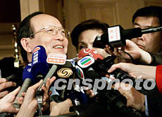 臺灣“中國臺商發(fā)展促進會”理事長章孝嚴二十二日與國務院臺辦主任陳云林就大陸臺商包機返鄉(xiāng)過年問題交換意見后,被港澳臺記者圍堵。作者:鄭萍萍