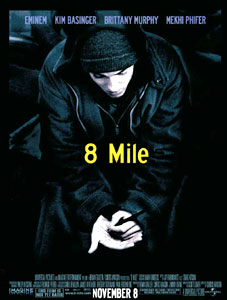 與一般音樂片不同的是,這部由前《洛城機密》導(dǎo)演柯蒂斯.漢森執(zhí)導(dǎo)的影片不是一部被拉長了的MTV,而是一部嚴(yán)肅的歌手傳記。故事發(fā)生在1995年的美國“汽車城”底特律,“8英里”就是該城一條主干道的名稱,這條街把底特律分成了黑白兩個世界。艾米納姆在電影里扮演了一個名叫吉米的白人說唱樂手。影片一開始,吉米準(zhǔn)備上臺參加一個說唱歌手比賽,卻緊張地在后臺廁所里大吐特吐。當(dāng)鏡頭終于隨著吉米來到舞臺上時,觀眾們立刻就會明白吉米為什么那么緊張了:臺下黑壓壓一片全是黑人!和吉米叫板的也是一個老黑,他一開口就咄咄逼人:“你是白人這沒什么,可你一拿起話筒就是個傻×了!”一句話就點明了主題:說唱樂一直都是美國城市黑人的民間音樂,你一個白人瞎起什么哄?