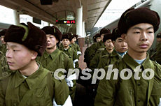來自湖北的百余名解放軍總后某部新兵十四日到達北京西站。年底前,全國各地的新兵將全部到位并投入軍營生活。作者:張煒