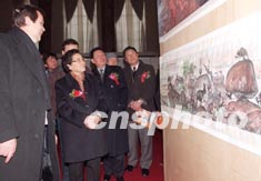 由國務院僑務辦公室主辦的“旅澳華人畫家姚迪雄畫展”,十八日在北京中國革命博物館開幕。全國人大常委會副委員長何魯麗(左二)、僑辦主任郭東坡(左三)與姚迪雄先生(左)一起參觀。作者:鄒憲