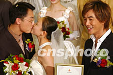 香港旅游發(fā)展局十二月二十日在“香港繽紛冬日節(jié)”,歌星任賢齊為來自中國華東及華南地區(qū)的七十五對(duì)有情人證婚。錢興強(qiáng) 攝