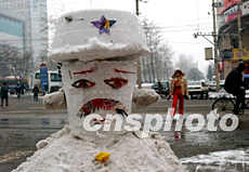 鬧市街頭堆起一座士兵雪人,為即將來(lái)臨的圣誕節(jié)和元旦節(jié)增添情趣。作者:賈國(guó)榮