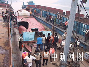 中新網(wǎng)長壽十二月二十三日電(記者鄒 輝)近過四天時間的緊張打撈,重慶長壽特大海損事故沉船今天下午整體打撈出水。重慶海事局官員陳勇介紹,經(jīng)過警方對沉船的仔細(xì)查找,未在沉船內(nèi)發(fā)現(xiàn)新的遇難者尸體。