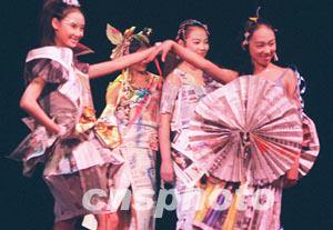 解放軍某部女兵歲末走上舞臺(tái),精心演繹用舊報(bào)紙、床單、沙巾等制成的別致時(shí)裝,釋放愛美心緒。作者:宋吉河
