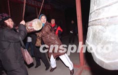 “年年鐘聲迎新歲,歲歲鐘聲有不同”,說(shuō)得就是二十多年來(lái),年年都要“敲擊迎新”的永樂(lè)大鐘。今天凌晨,當(dāng)北京人再次隆重地敲響這口“世界鐘王”時(shí),一百零八響悠揚(yáng)的鐘聲劃破京城夜空,并通過(guò)氣動(dòng)揚(yáng)聲器告訴千里之外的北京人:新年到了。