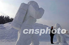 圖:雪雕宇航員歡迎“神舟”四號回家