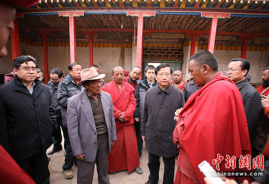青海省委書記強(qiáng)衛(wèi)問(wèn)候結(jié)古寺受災(zāi)僧侶