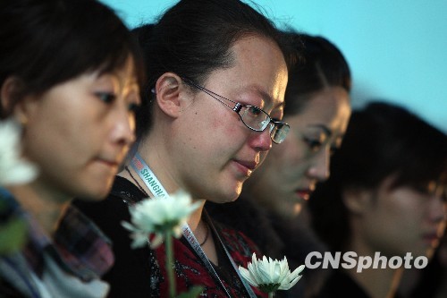 世博青海館工作人員哀悼玉樹地震遇難者