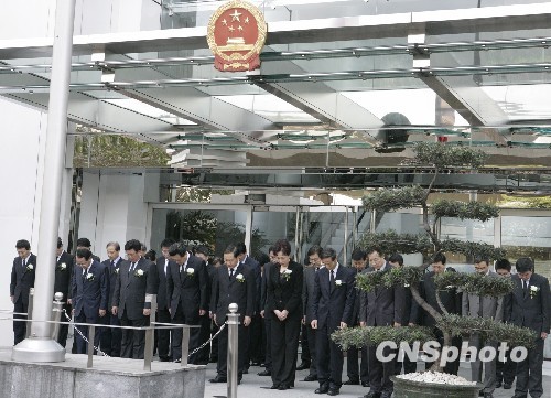 中國(guó)駐日本大使館為玉樹地震降半旗默哀