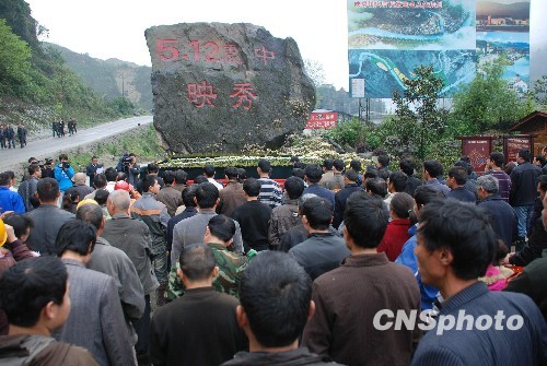 映秀民眾沉痛悼念玉樹地震遇難同胞