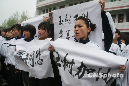 圖:河南漯河中學(xué)生哀悼玉樹地震遇難者