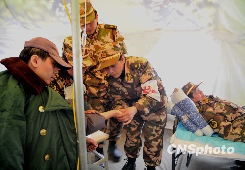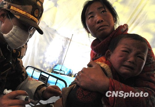 青海玉樹地震:軍醫(yī)忙于為患病兒童打針