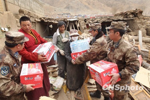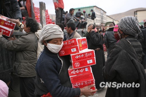 圖:玉樹縣為居民發(fā)放免費(fèi)食品