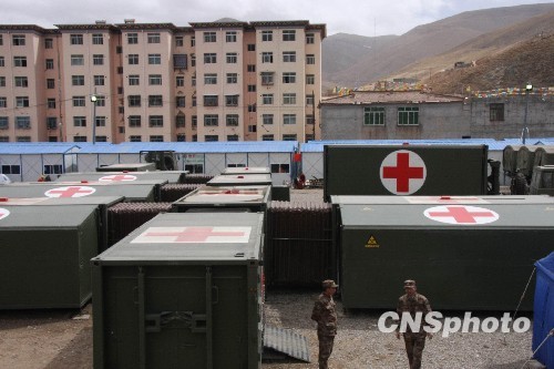 圖:濟(jì)南軍區(qū)野戰(zhàn)方艙醫(yī)院奮戰(zhàn)玉樹地震災(zāi)區(qū)