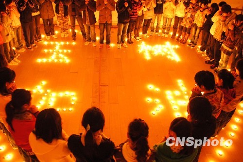 圖:江蘇高校學(xué)生為玉樹祈福